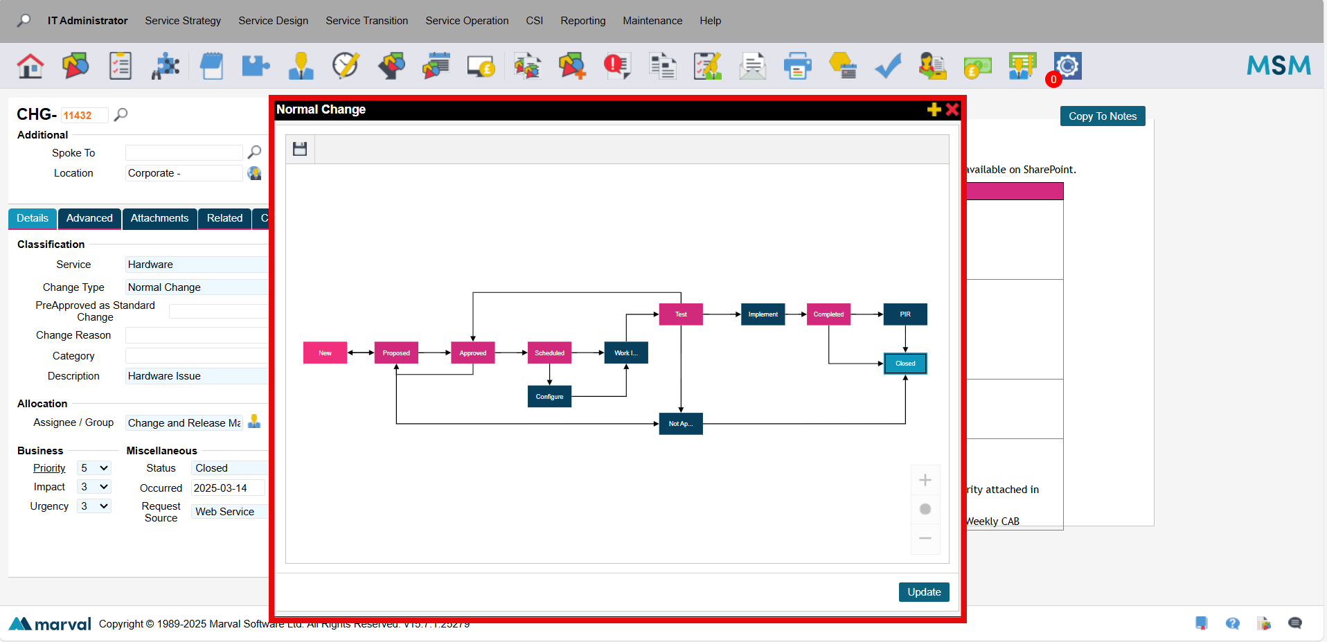 ITIL-based visual workflows guide you through each core activity of Change Management. MSM allows your business to evolve in a controlled manner, keeping track of critical business systems and their performance. Using a central tool to track changes and communicate enables teams to collaborate dynamically.